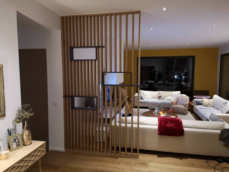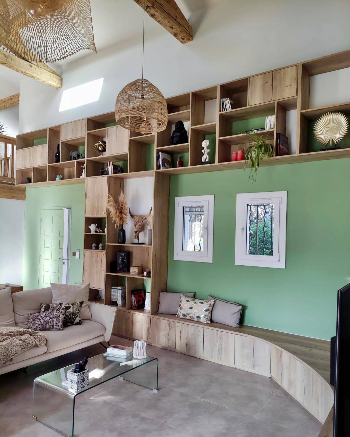 Dressing, bibliothèque, meuble TV, cuisine sur mesure, rangement sous-pente ou cloison verrière, chaque projet est conçu avec soin, selon vos besoins et votre style de vie.