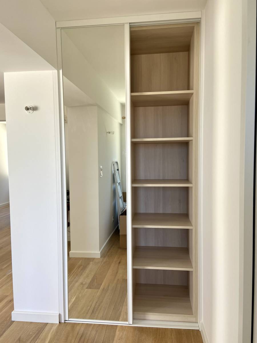 Le sur mesure était nécessaire dû aux rénovations effectuées qui laissent place à des dimensions hors standards en plus des attentes qu’elle avait concernant l’aménagement intérieur de ces placards.